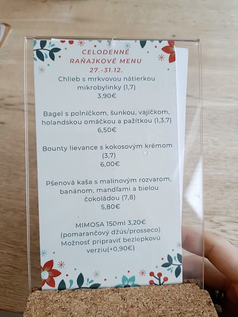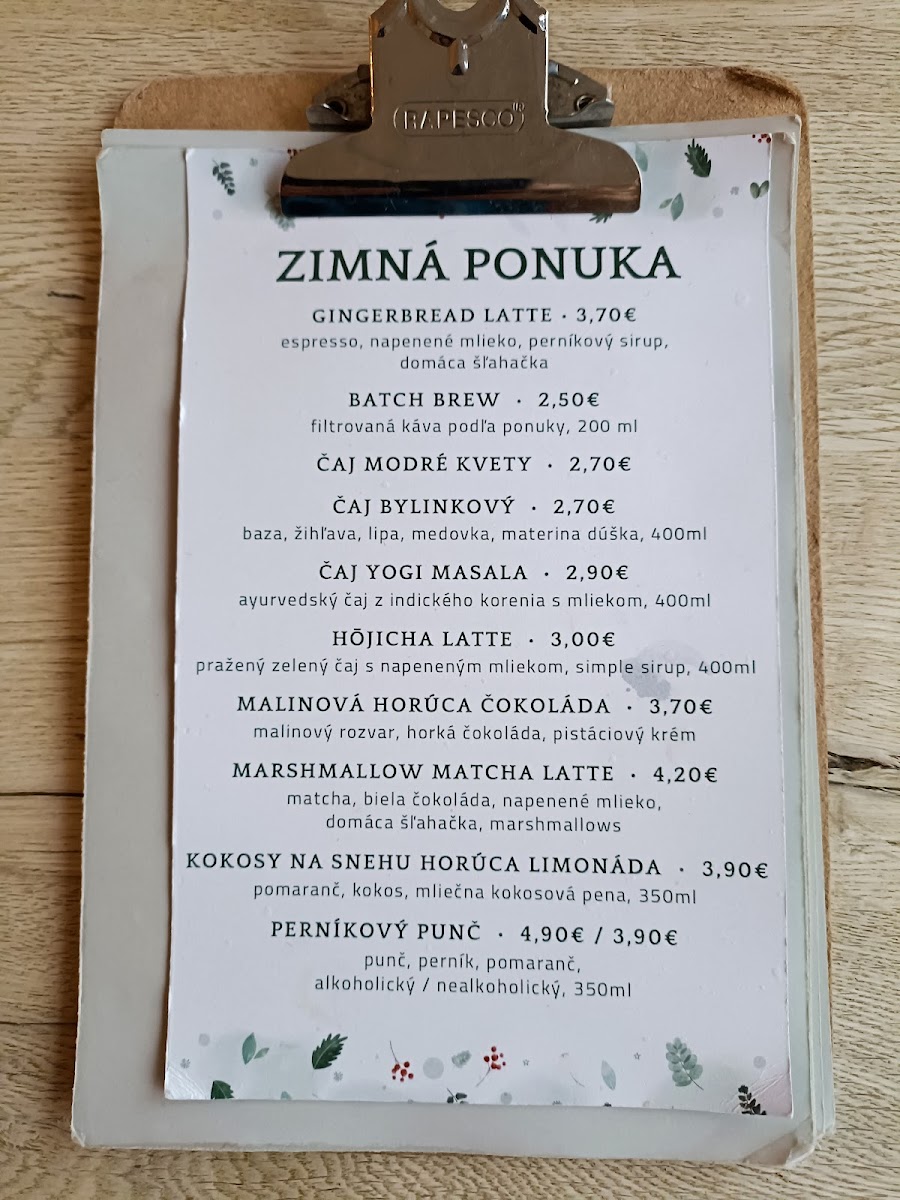 The menu at Lávka cafe offers a variety of beverages and light food options suitable for breakfast, coffee breaks, or casual dining. Beverage choices include a range of coffee drinks, with a focus on Robusta and specialty items like Matcha Latte. The food selection features light meals and snacks, including gluten-free options and homemade items such as granola. Visitors can expect dishes that complement their beverage selection, serving well for quick orders or relaxed visits.